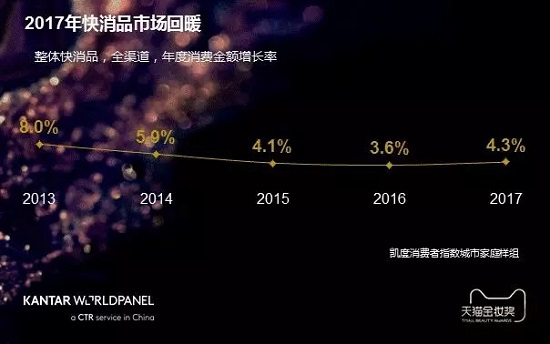 近日,凱度消費者指數大中華區總經理虞堅受邀參加天貓金妝獎峰會時,聯合發布了最新行業趨勢報告《把握新生代消費者的升級路線》。報告中指出快速消費品市場出現了全面回暖的跡象,線上消費引領了全渠道的增長,這一點在美妝洗護行業表現尤為突出。其中,美妝的增量來自于更多的細分市場。凱度消費者指數美妝樣組研究發現,2017年有35%的美妝消費者增加了護膚或彩妝步驟。口紅、眼影、精華等成為明星和機會品類。此外,在個護家清領域,高端化仍是主旋律。2017年個護家清品類中,來自產品升級的金額貢獻了54%。《把握新生代消費者的升級路線》報告中稱,新生代消費者正在改變中國市場,年輕群體已成消費主力。從消費金額占比來看,50%的美妝消費來自于15-29歲的女性,而在線上消費,這個比例還要更高,達到了59%。同時,不能忽視是“小鎮青年”們的購買力。報告顯示,生活在西部和北部的年輕消費者,其2017年購買美妝、個護家清的消費金額增長率,明顯高于東部和南部。此外,《把握新生代消費者的升級路線》報告還認為:消費者訴求的變化是推動市場的原因。報告指出,天然健康、簡單便利、快樂個性這三點不僅僅是中國女性的訴求,也是全球女性的訴求。在美國,有28%的女性認為天然的產品更有效,有45%的女性更偏好天然產品。 在法國,藥妝渠道的占比逐年增長,到2016年,其市場占比達到15.6%。其次,簡單便利又高效的產品也日趨受到女性的青睞。例如,2017年素顏霜類產品的銷售額增長了68%,防曬噴霧產品增長了66%。此外,能展現自我個性化的產品也越來越受到追